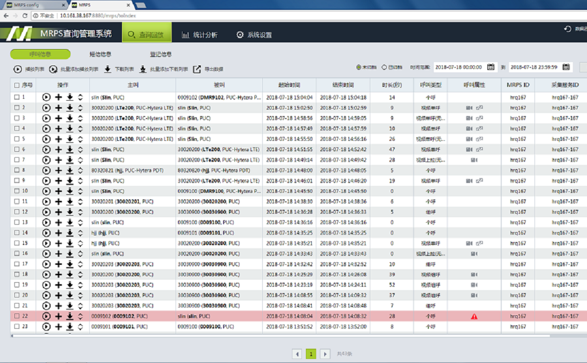 MRPS(Multimedia Recording and Playback System)多媒体录播系统通过IP网络采集所有经过统一通信平台(PUC)与多媒体统一通信平台(MUC)的语音、视频、消息、终端上下线等信息,并存储在相应的数据库与媒体库中。该系统基于B/S(Browser/Server)架构,可通过IE浏览器进行记录查询、回放、多媒体文件下载。