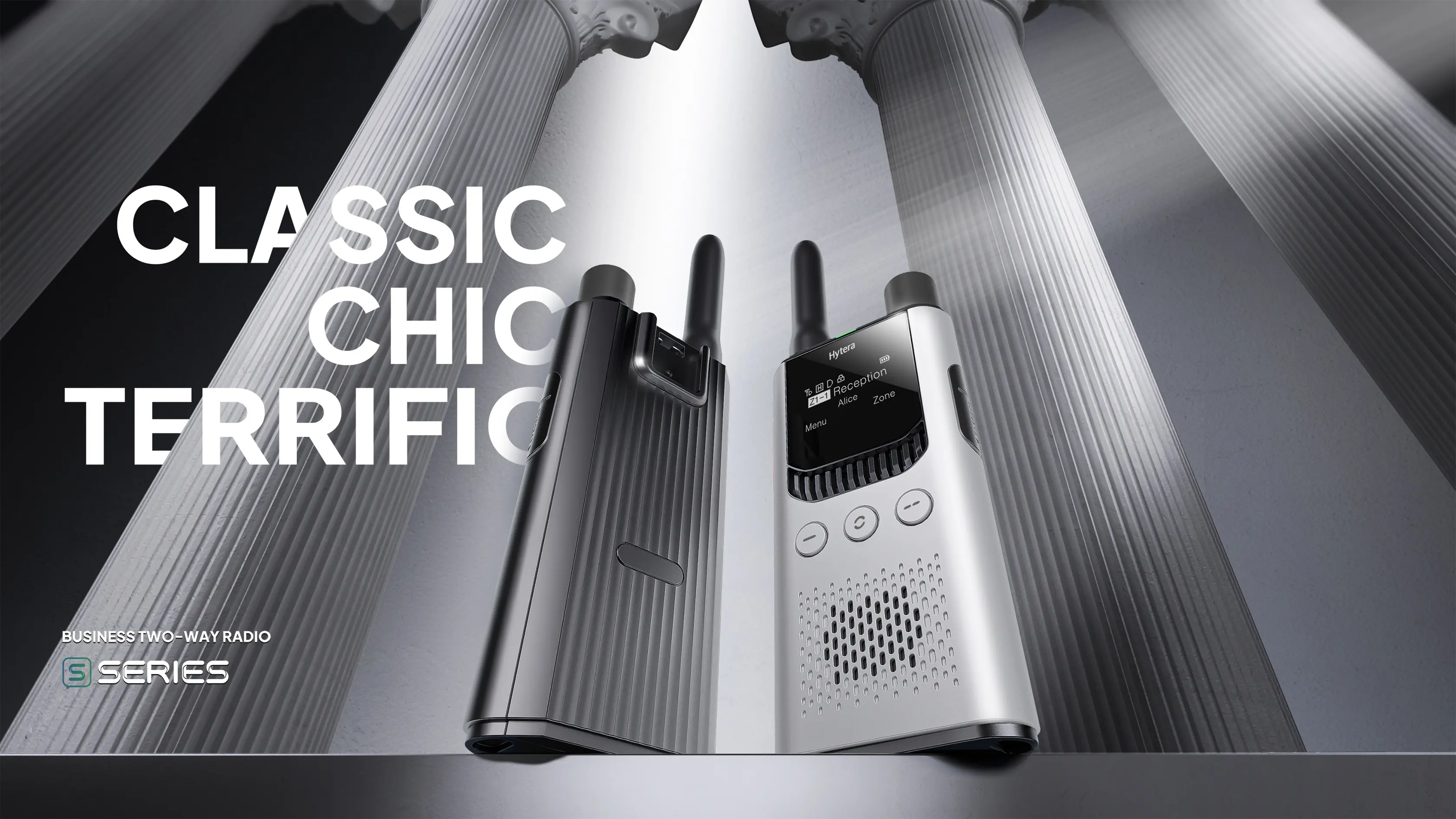 As another product of the S1 series, Hytera S1 blends classic radio elements with exquisite craftsmanship and forward fashion. It is favored by business and commercial customers, such as supermarkets, hotels, and restaurants.